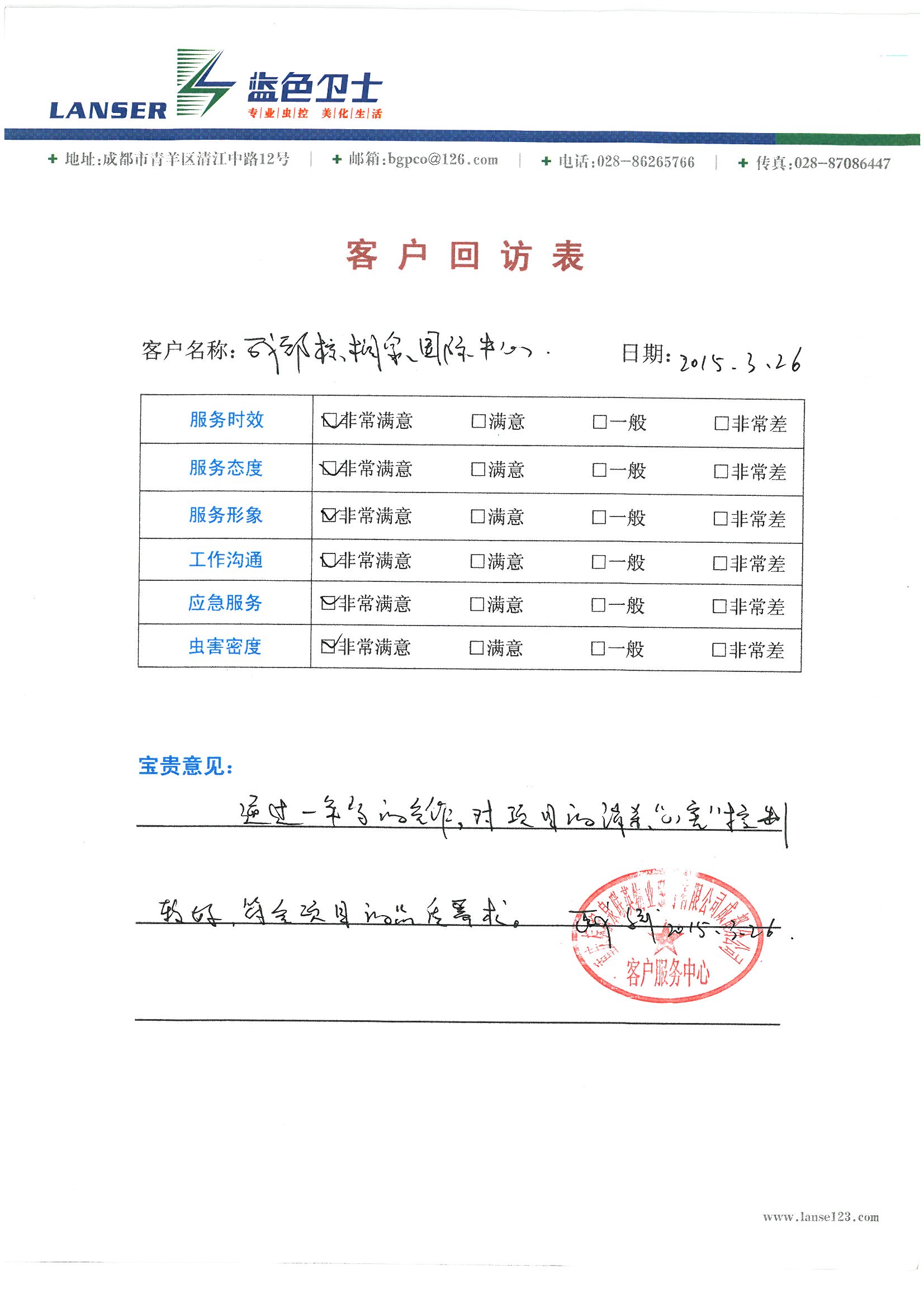 通過一年的合作,對項目的消殺、四害控制的較好,符合項目的品質(zhì)要求!